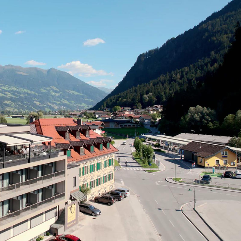 ▸ von dort aus weiter mit der Zillertal Bahn, dem Bus oder Taxi nach Strass im Zillertal